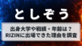 愛知県豊川市出身で27、28歳という若さでありながら、地下格闘技からスタートし、ブレイキングダウンでの活躍で一気に知名度を上げてきた。